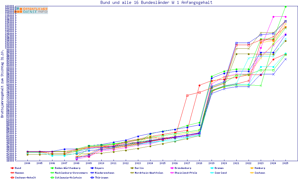 | Besoldungsvergleich W 1 im Jahr 2025 | Anfangsgehalt | ||||||