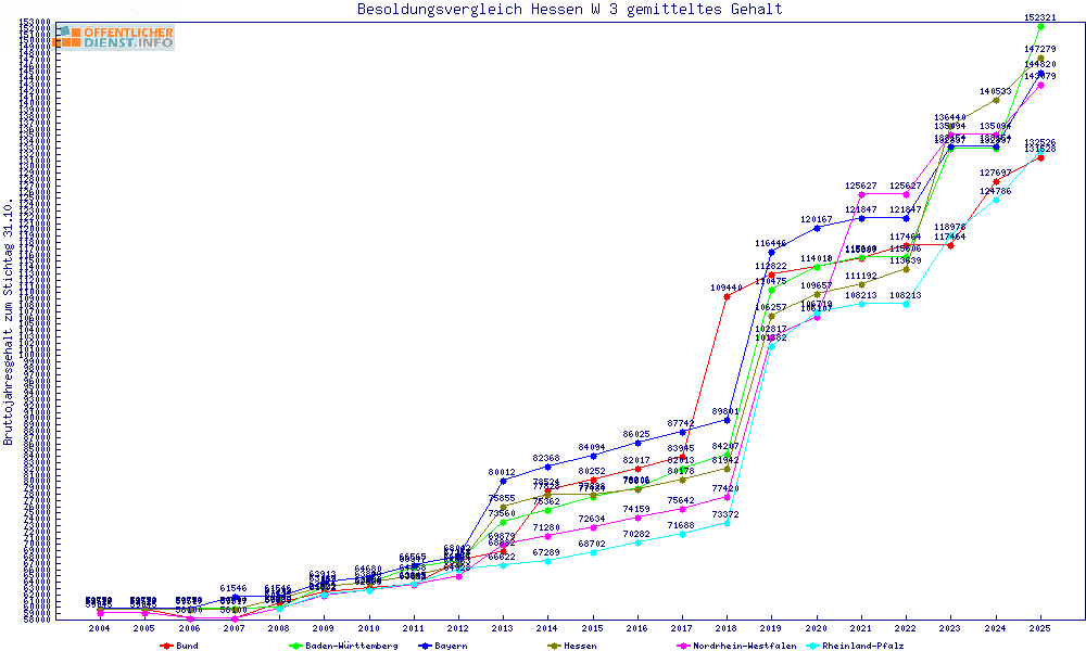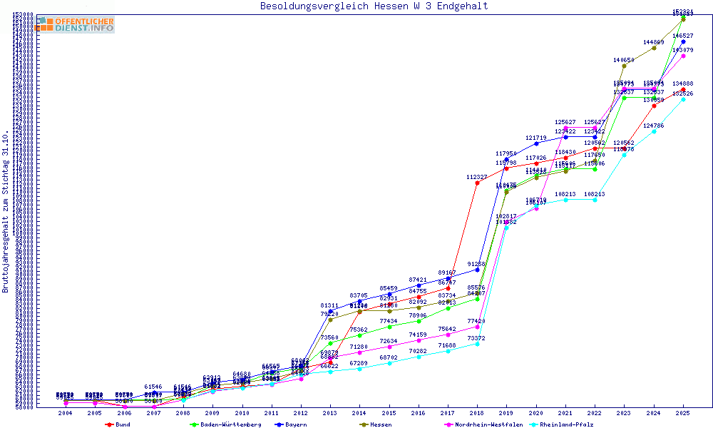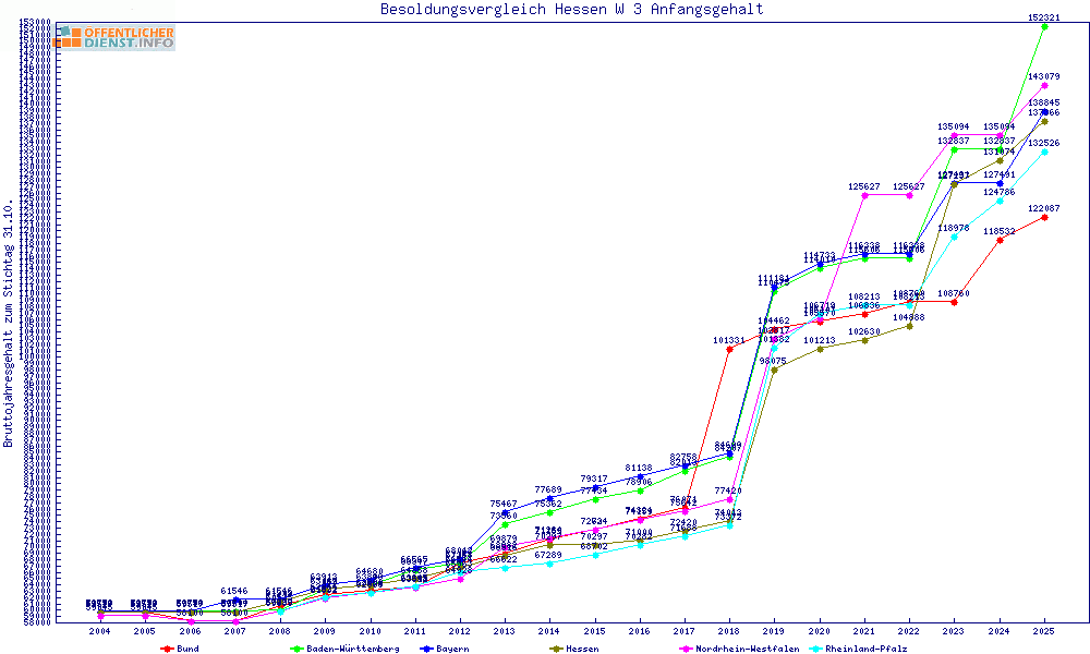 | Besoldungsvergleich W 3 im Jahr 2025 | Anfangsgehalt | ||||||