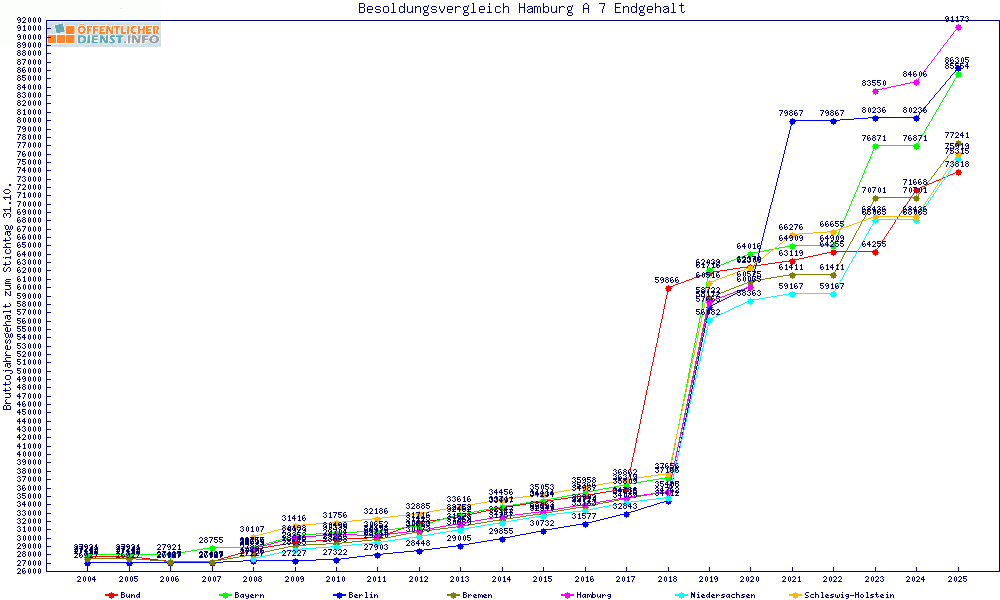 | Besoldungsvergleich A 7 im Jahr 2025 | Endgehalt | |||||||