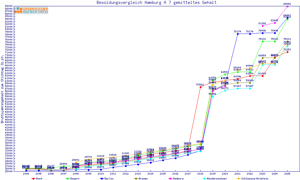 | Besoldungsvergleich A 7 im Jahr 2025 | gemitteltes Gehalt | ||||||