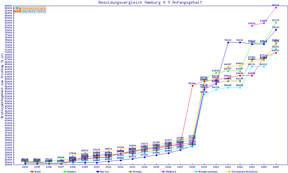 | Besoldungsvergleich A 9 im Jahr 2025 | Anfangsgehalt | ||||||