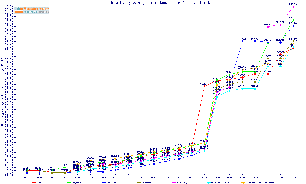 graphischer Besoldungsvergleich gemitteltes Gehalt aller Bundesländer