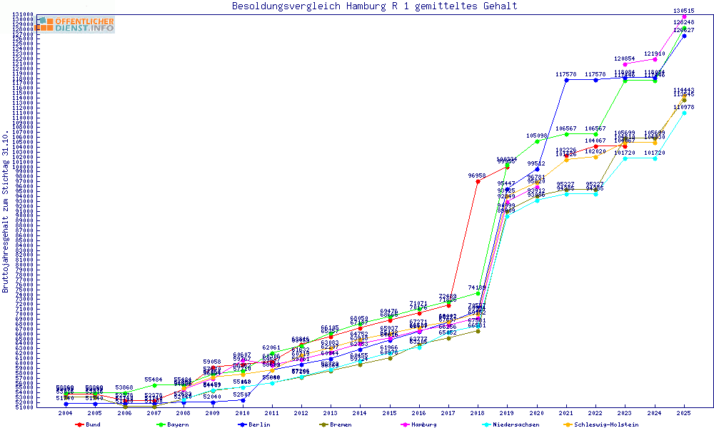 graphischer Besoldungsvergleich gemitteltes Gehalt aller Bundesländer