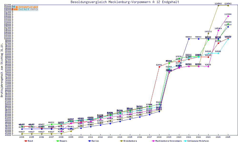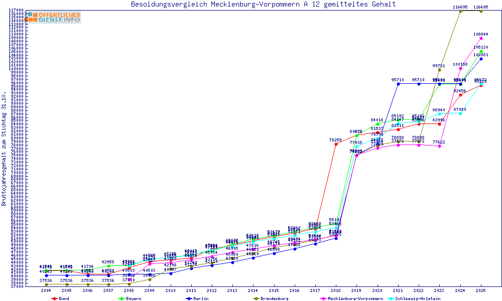 | Besoldungsvergleich A 12 im Jahr 2025 | gemitteltes Gehalt | ||||||