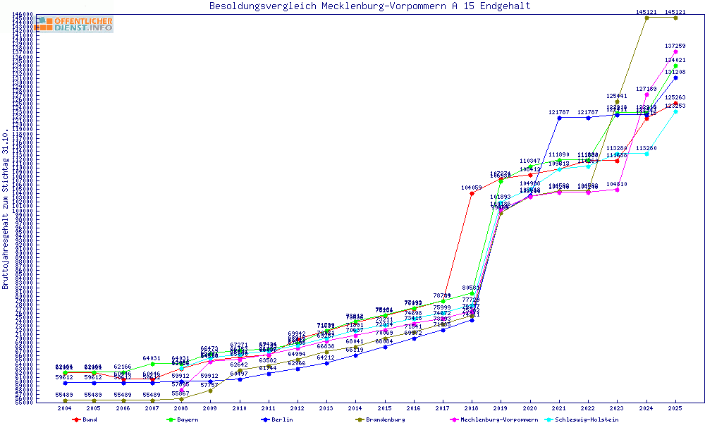 | Besoldungsvergleich A 15 im Jahr 2025 | Anfangsgehalt | ||||||