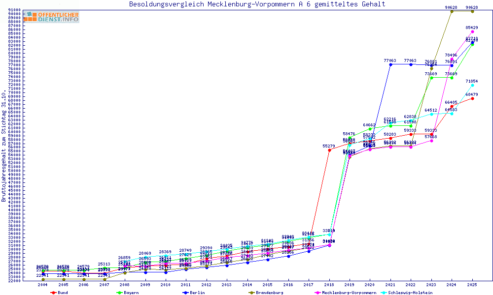 | Besoldungsvergleich A 6 im Jahr 2025 | gemitteltes Gehalt | ||||||