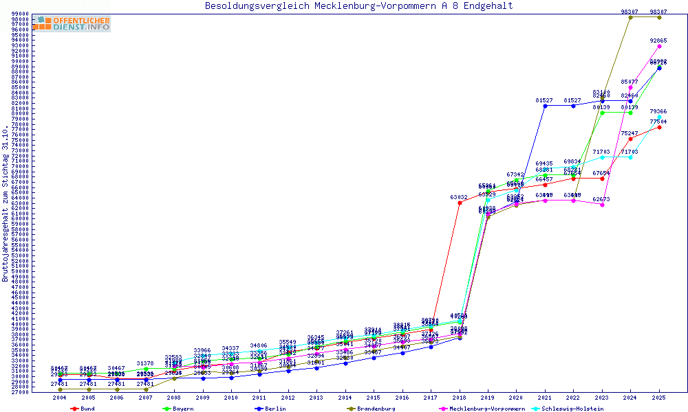 | Besoldungsvergleich A 8 im Jahr 2025 | Endgehalt | |||||||