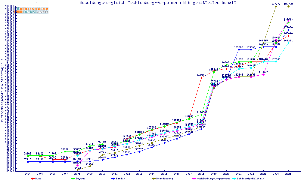 | Besoldungsvergleich B 6 im Jahr 2025 | gemitteltes Gehalt | ||||||
