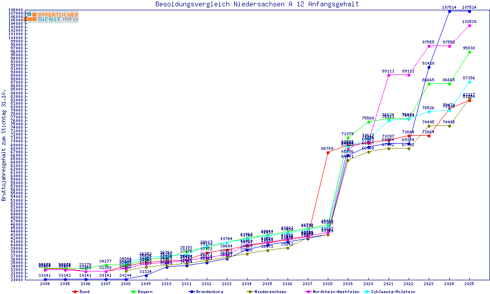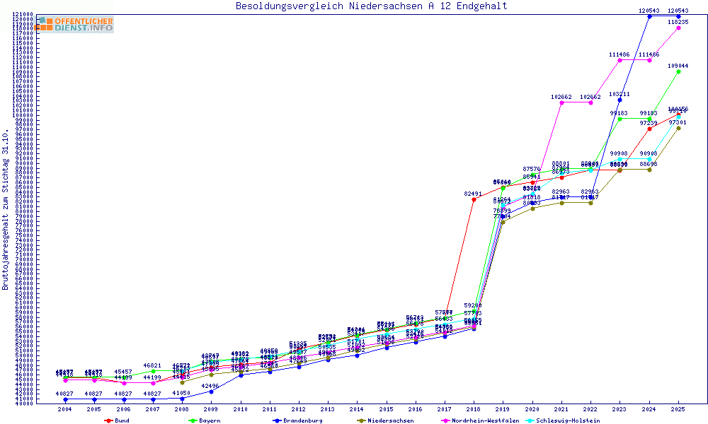 | Besoldungsvergleich A 12 im Jahr 2025 | Anfangsgehalt | ||||||