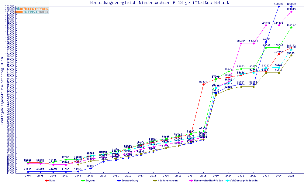 | Besoldungsvergleich A 13 im Jahr 2025 | Anfangsgehalt | ||||||