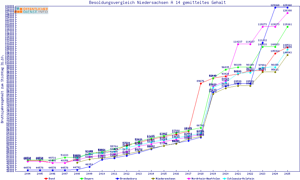| Besoldungsvergleich A 14 im Jahr 2025 | gemitteltes Gehalt | ||||||