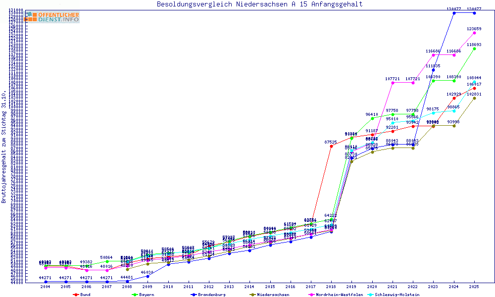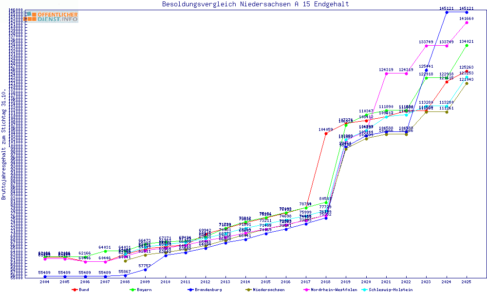 | Besoldungsvergleich A 15 im Jahr 2025 | Anfangsgehalt | ||||||