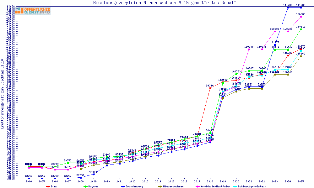 | Besoldungsvergleich A 15 im Jahr 2025 | gemitteltes Gehalt | ||||||