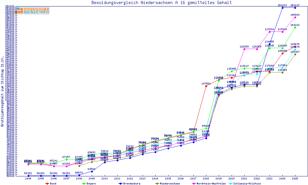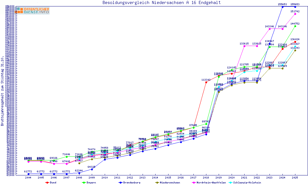 | Besoldungsvergleich A 16 im Jahr 2025 | Anfangsgehalt | ||||||