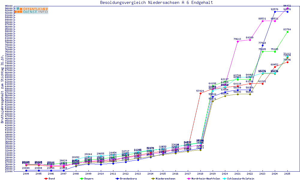 | Besoldungsvergleich A 6 im Jahr 2025 | Anfangsgehalt | ||||||