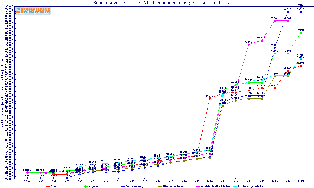 | Besoldungsvergleich A 6 im Jahr 2025 | gemitteltes Gehalt | ||||||