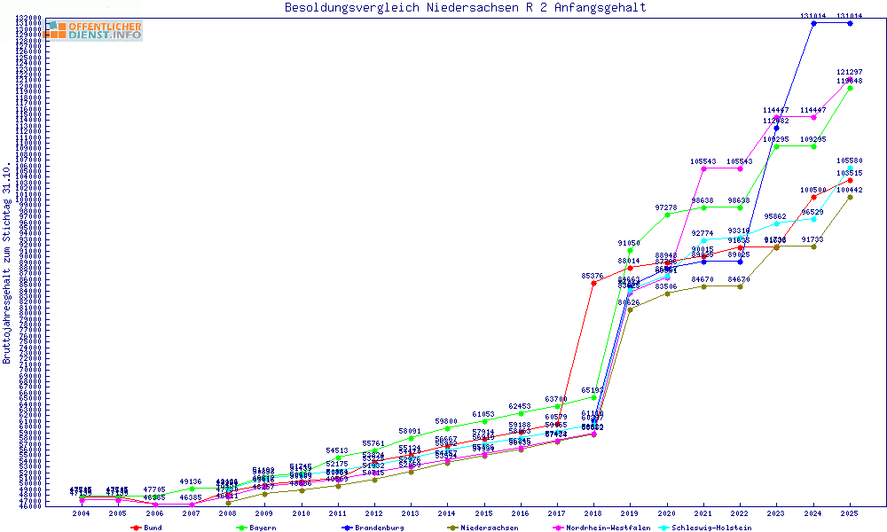 | Besoldungsvergleich R 2 im Jahr 2025 | Anfangsgehalt | ||||||