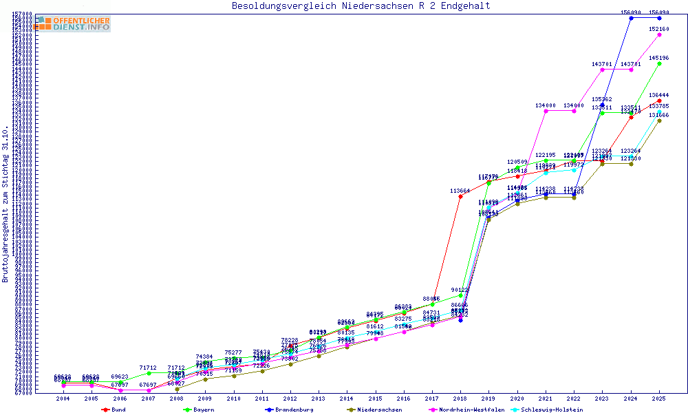 | Besoldungsvergleich R 2 im Jahr 2025 | Endgehalt | |||||||