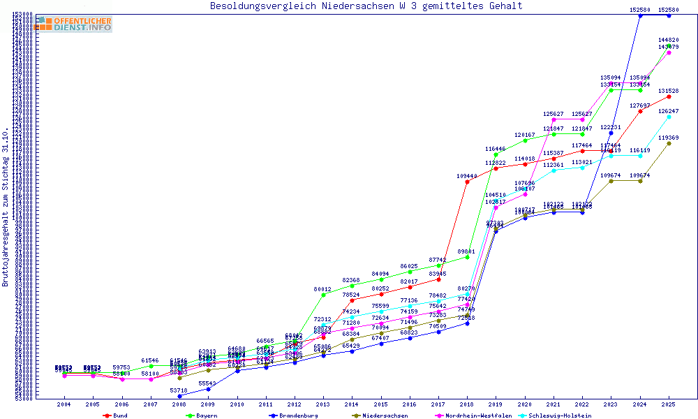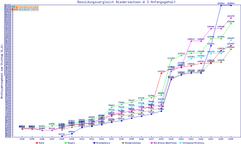 | Besoldungsvergleich W 3 im Jahr 2025 | Anfangsgehalt | ||||||