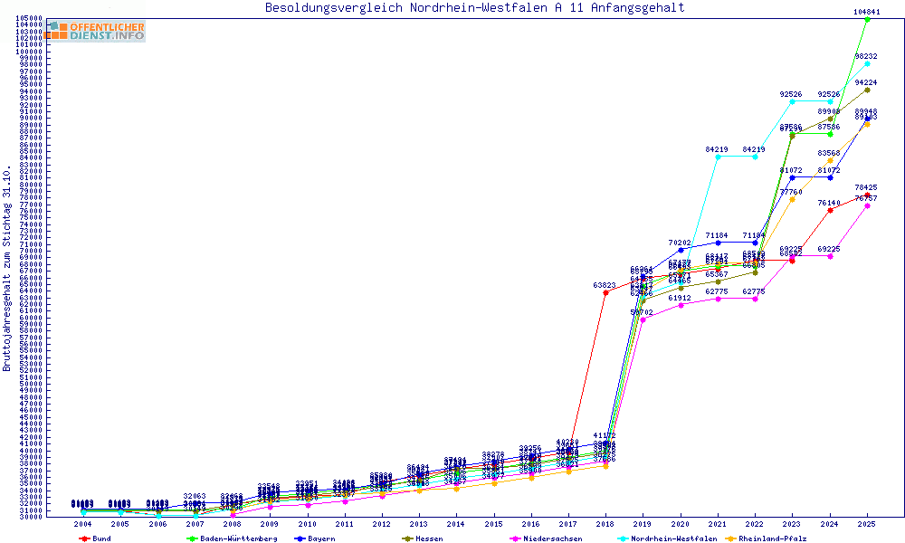 | Besoldungsvergleich A 11 im Jahr 2025 | Anfangsgehalt | ||||||