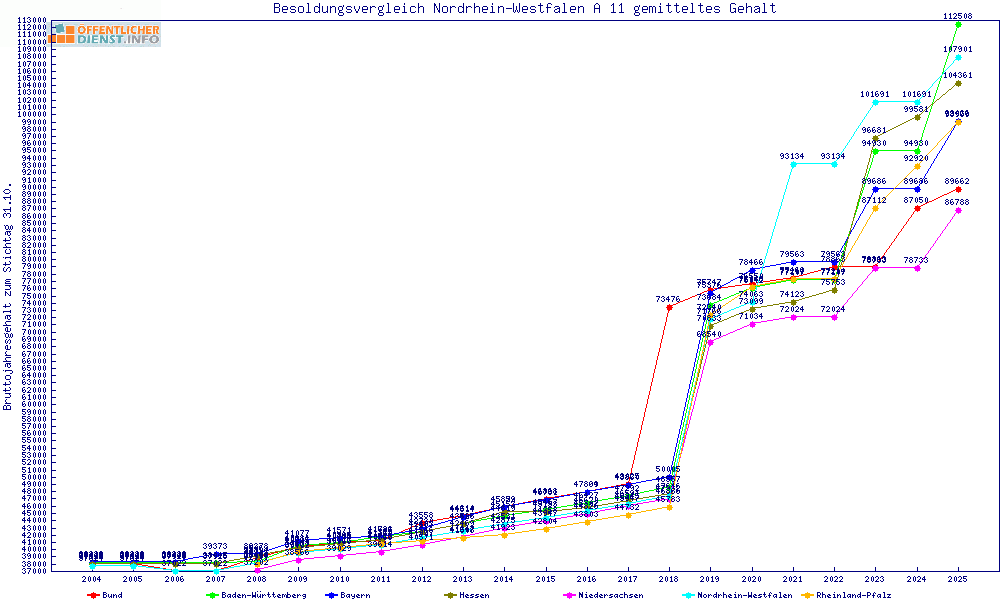 | Besoldungsvergleich A 11 im Jahr 2025 | gemitteltes Gehalt | ||||||