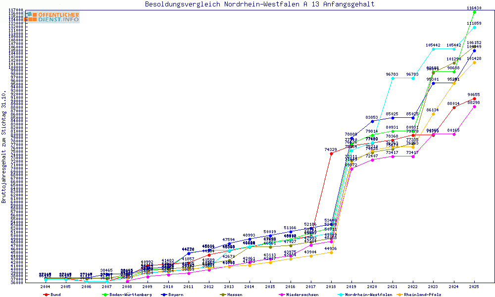 | Besoldungsvergleich A 13 im Jahr 2025 | Anfangsgehalt | ||||||