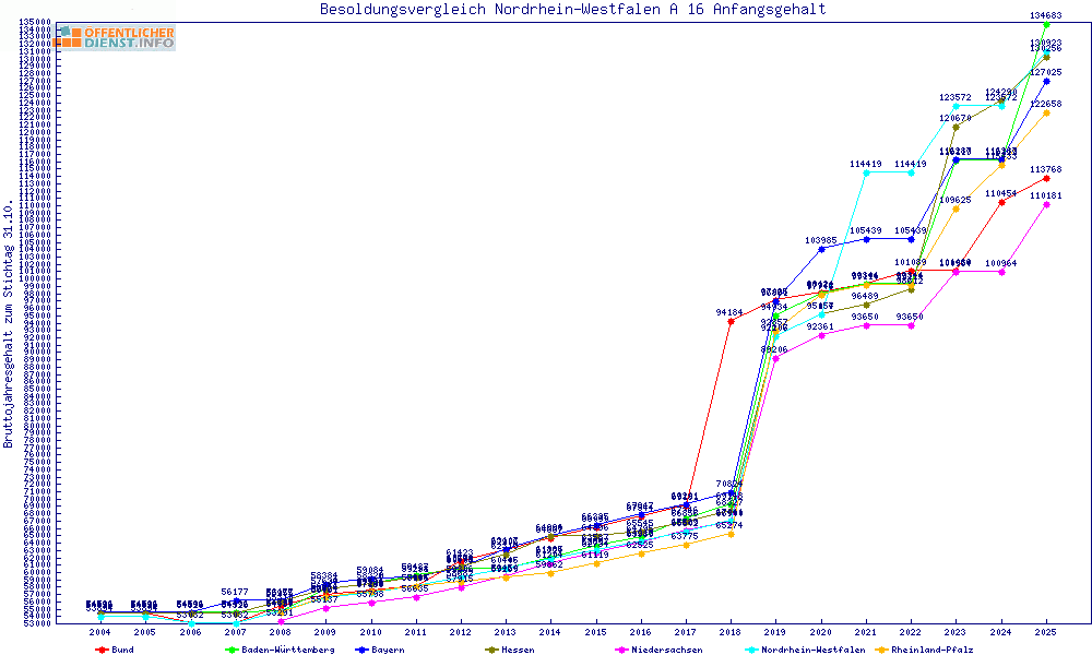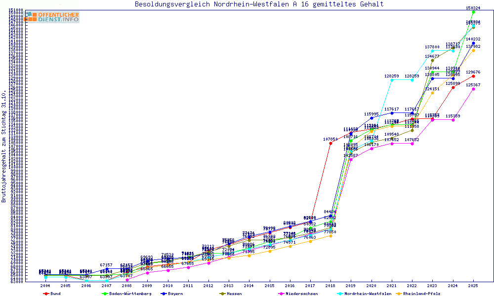 | Besoldungsvergleich A 16 im Jahr 2025 | Anfangsgehalt | ||||||