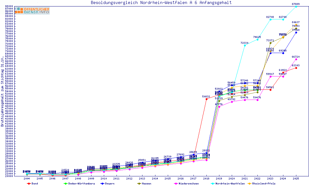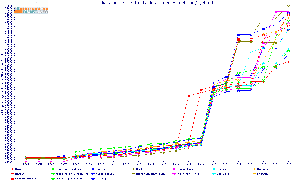 | Besoldungsvergleich A 6 im Jahr 2025 | Anfangsgehalt | ||||||