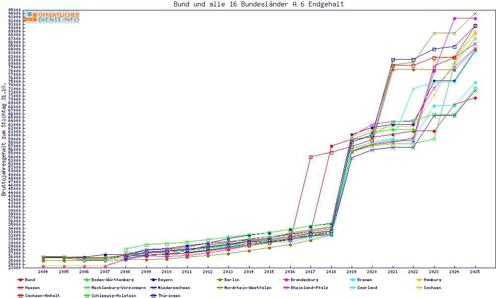 | Besoldungsvergleich A 6 im Jahr 2025 | Endgehalt | |||||||