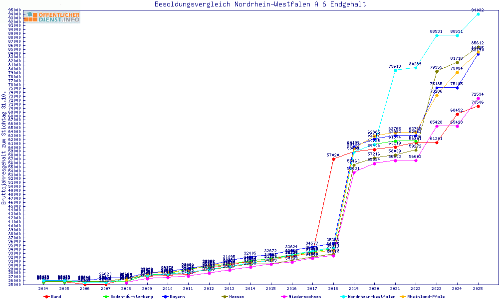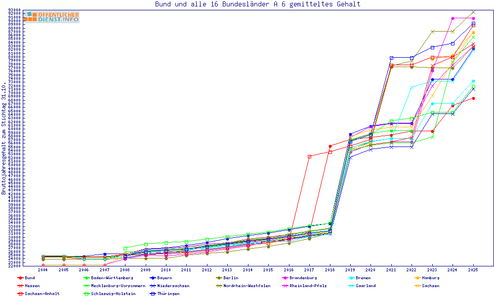 | Besoldungsvergleich A 6 im Jahr 2025 | gemitteltes Gehalt | ||||||