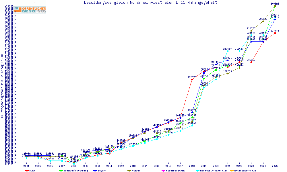 | Besoldungsvergleich B 11 im Jahr 2025 | Anfangsgehalt | ||||||