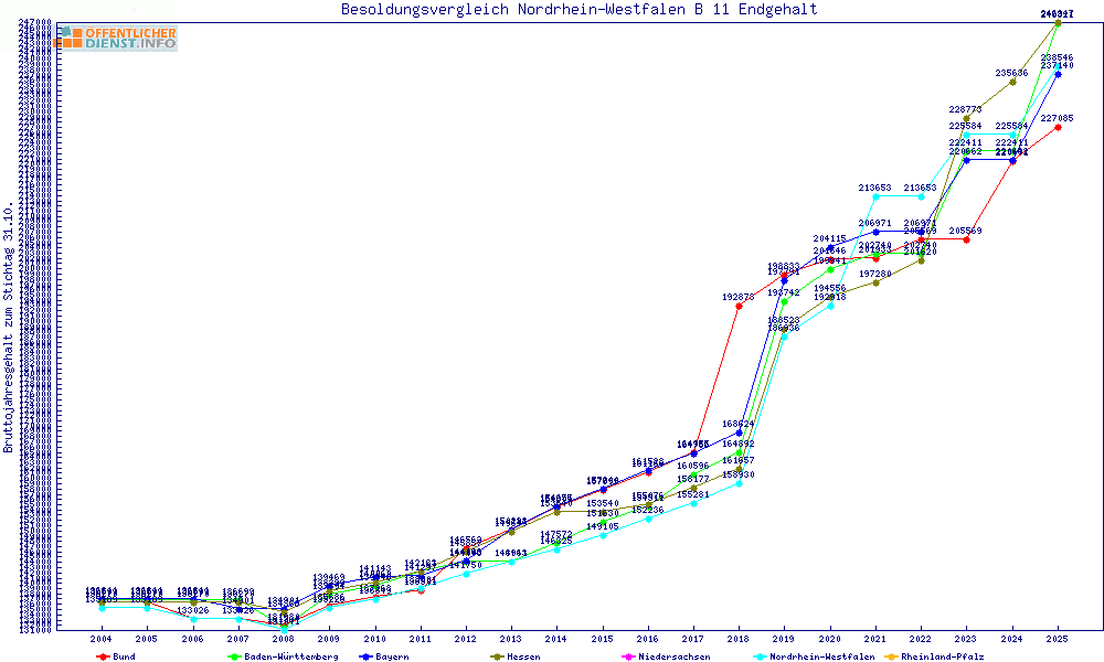 | Besoldungsvergleich B 11 im Jahr 2025 | gemitteltes Gehalt | ||||||