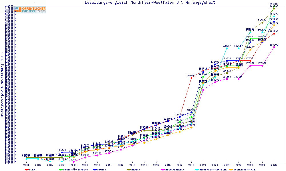 | Besoldungsvergleich B 9 im Jahr 2025 | Anfangsgehalt | ||||||