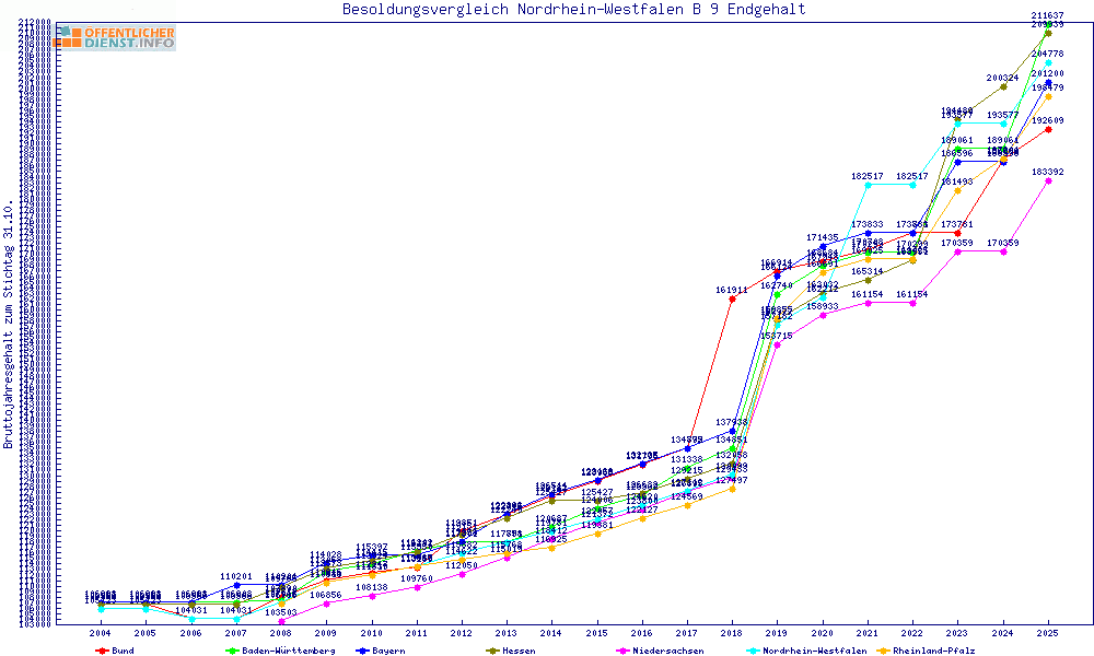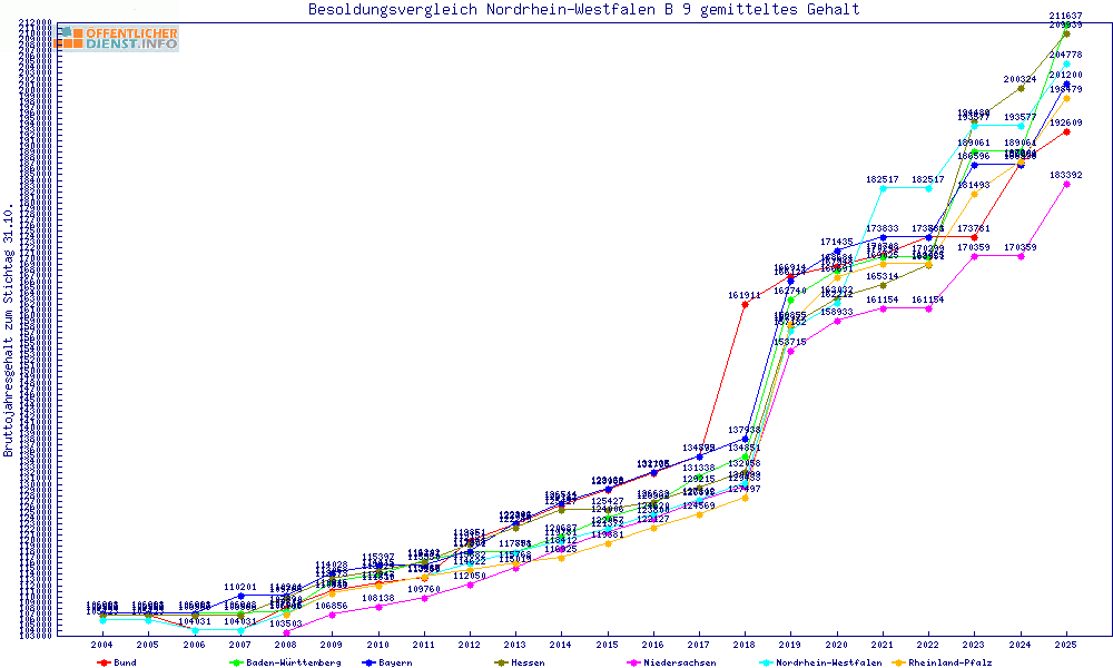 | Besoldungsvergleich B 9 im Jahr 2025 | gemitteltes Gehalt | ||||||