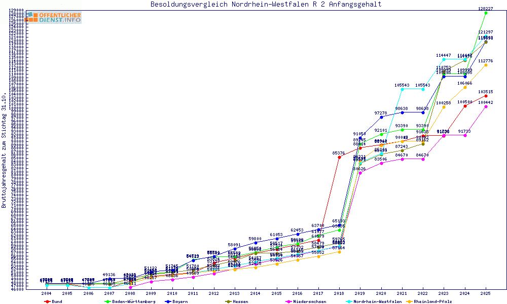 | Besoldungsvergleich R 2 im Jahr 2025 | Anfangsgehalt | ||||||
