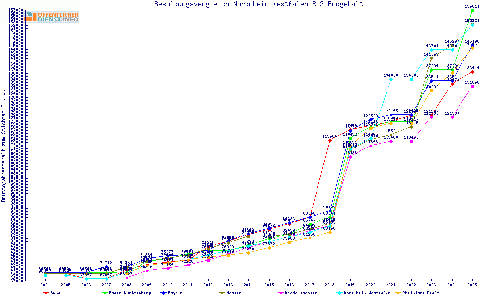 | Besoldungsvergleich R 2 im Jahr 2025 | Endgehalt | |||||||