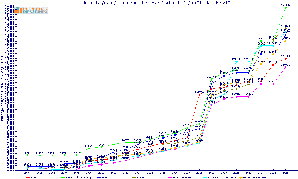 | Besoldungsvergleich R 2 im Jahr 2025 | gemitteltes Gehalt | ||||||
