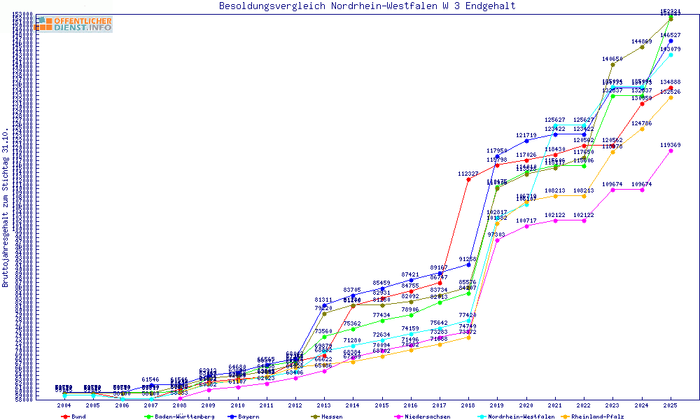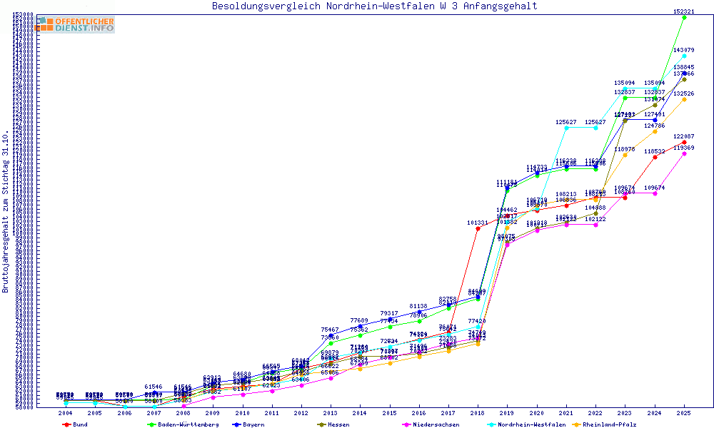 | Besoldungsvergleich W 3 im Jahr 2025 | Anfangsgehalt | ||||||