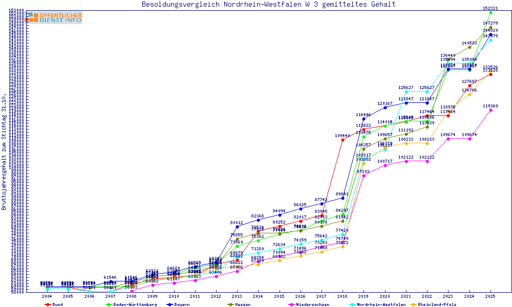 | Besoldungsvergleich W 3 im Jahr 2025 | gemitteltes Gehalt | ||||||