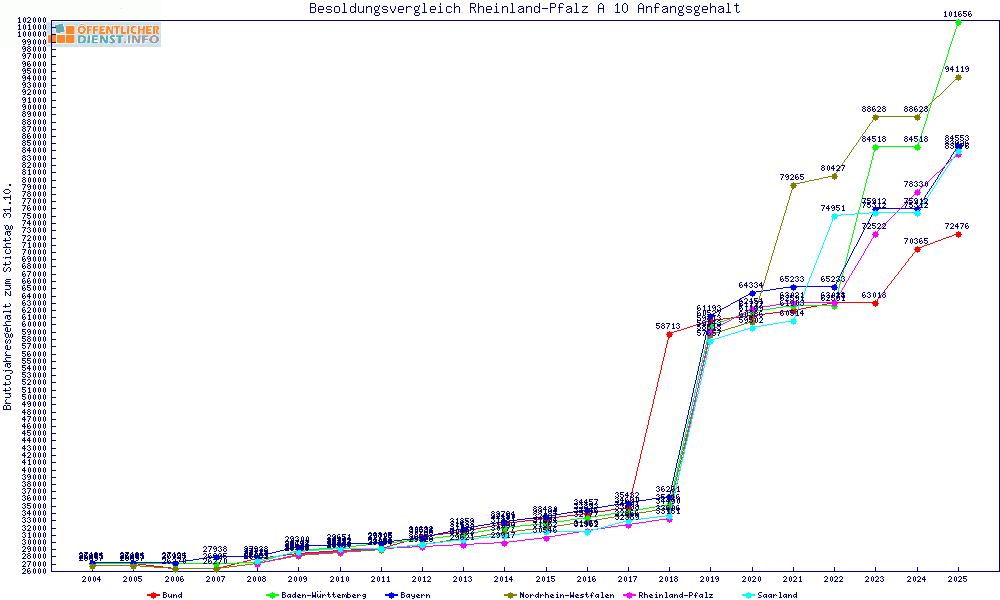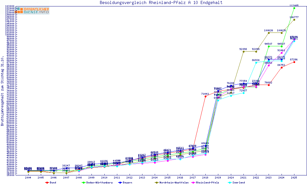 | Besoldungsvergleich A 10 im Jahr 2025 | Anfangsgehalt | ||||||