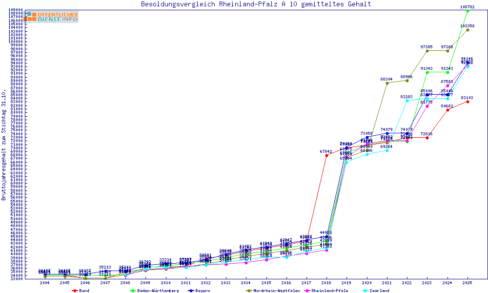 | Besoldungsvergleich A 10 im Jahr 2025 | gemitteltes Gehalt | ||||||