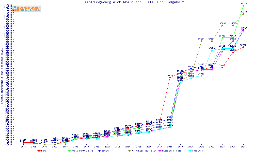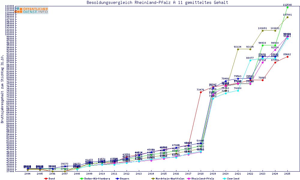 | Besoldungsvergleich A 11 im Jahr 2025 | gemitteltes Gehalt | ||||||