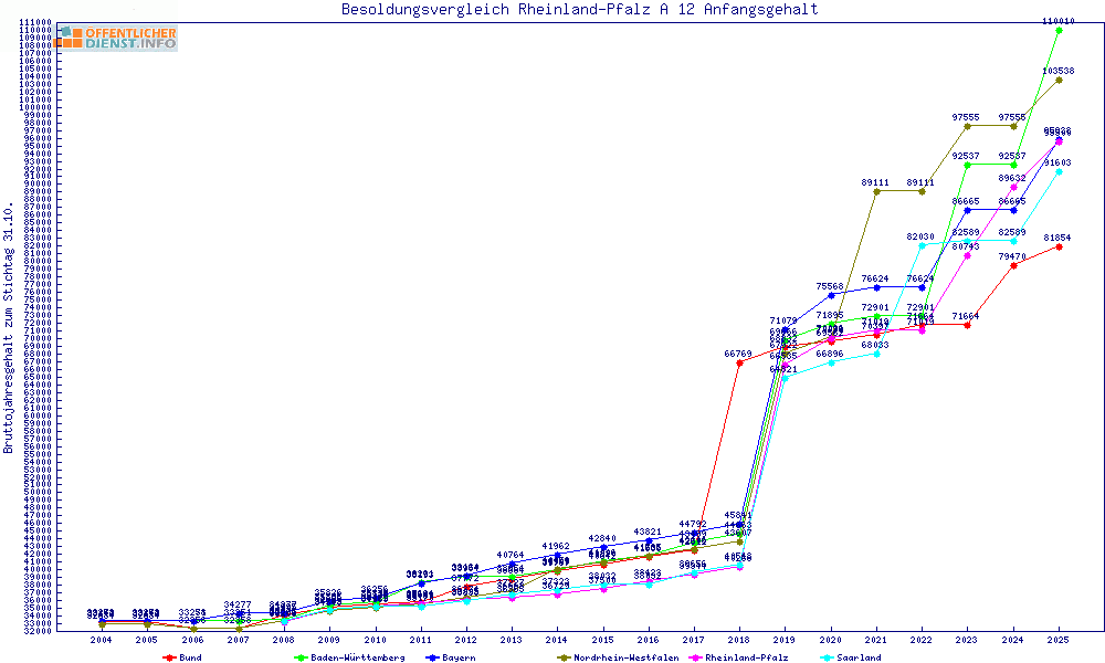 | Besoldungsvergleich A 12 im Jahr 2025 | Anfangsgehalt | ||||||