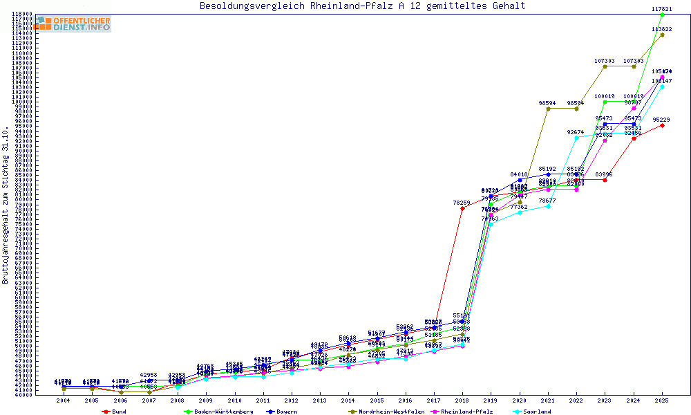 | Besoldungsvergleich A 12 im Jahr 2025 | gemitteltes Gehalt | ||||||