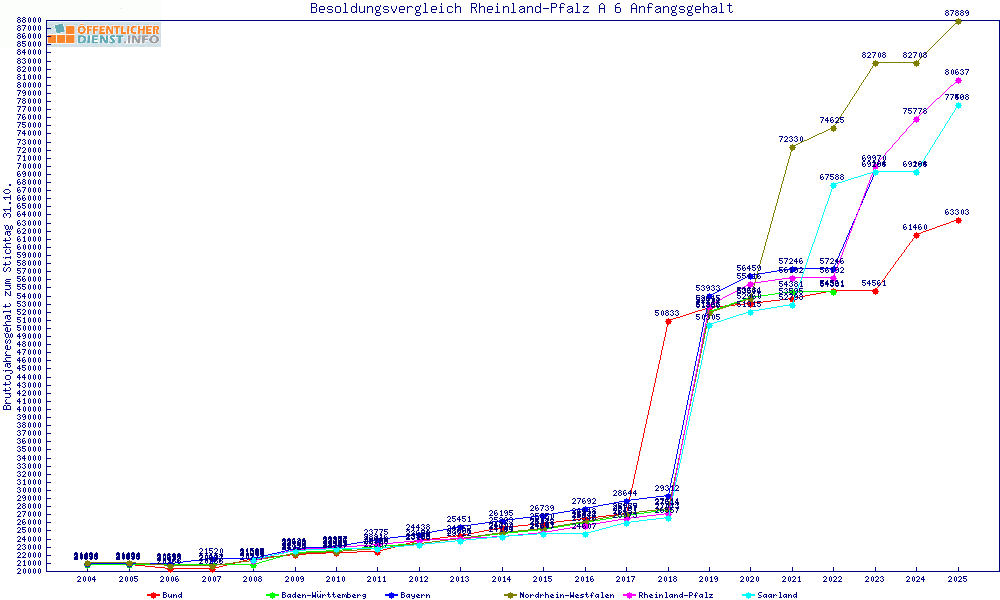 | Besoldungsvergleich A 6 im Jahr 2025 | Anfangsgehalt | ||||||