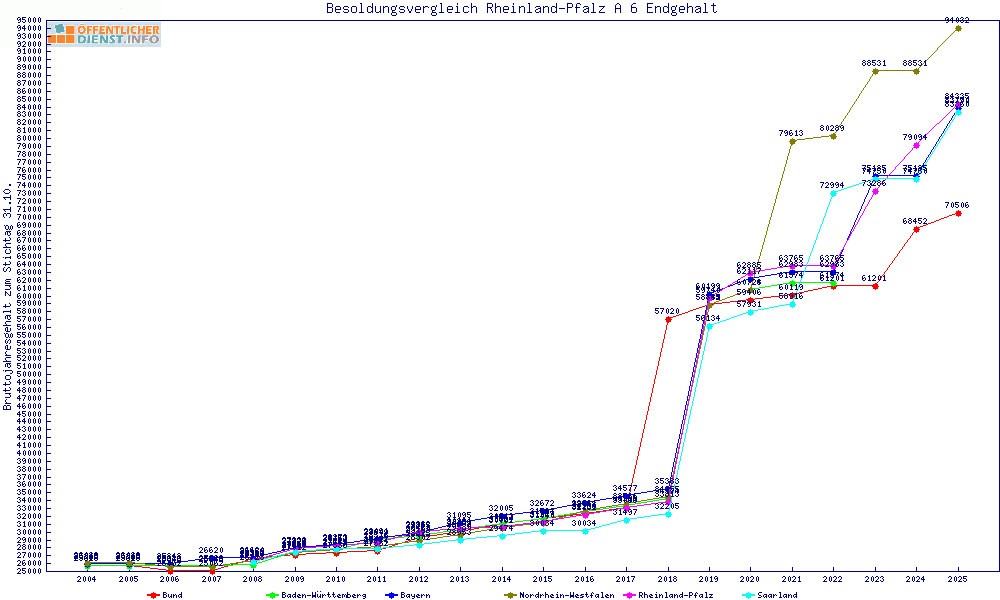 | Besoldungsvergleich A 6 im Jahr 2025 | Endgehalt | |||||||