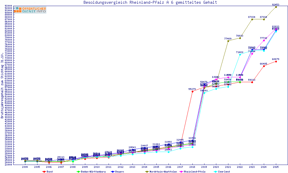 | Besoldungsvergleich A 6 im Jahr 2025 | gemitteltes Gehalt | ||||||