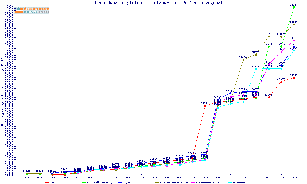 | Besoldungsvergleich A 7 im Jahr 2025 | Anfangsgehalt | ||||||