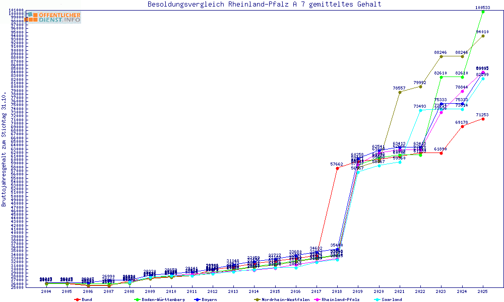 | Besoldungsvergleich A 7 im Jahr 2025 | gemitteltes Gehalt | ||||||