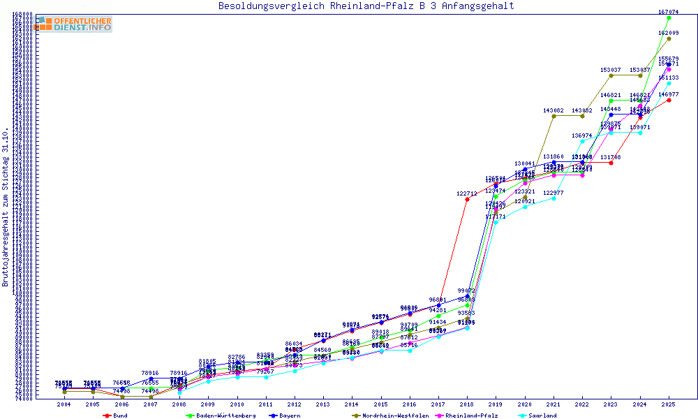 | Besoldungsvergleich B 3 im Jahr 2025 | gemitteltes Gehalt | ||||||